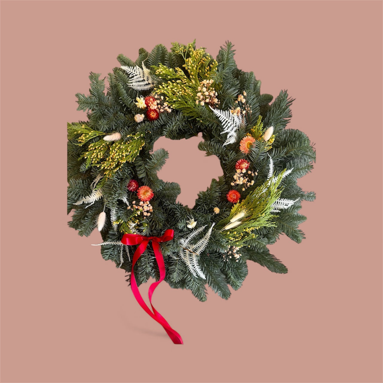 Holiday Pine Noble Fir & Dried Floral Wreath